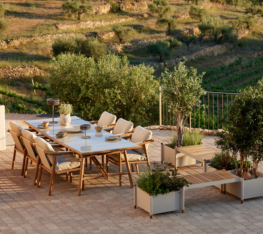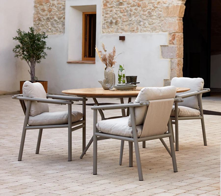 The Sticks armchair from the Sticks series seamlessly combines charm and modern design. Drawing inspiration from sticks, its durable construction ensures a perfect balance between relaxation and dining comfort. The cushions add extra comfort and style. Use it with the Sticks Dining table or as you desire.