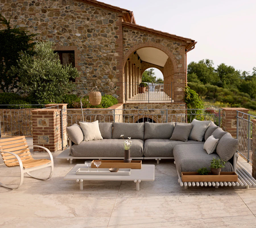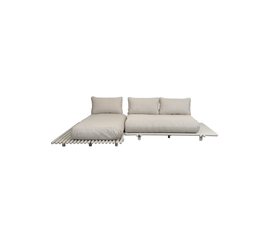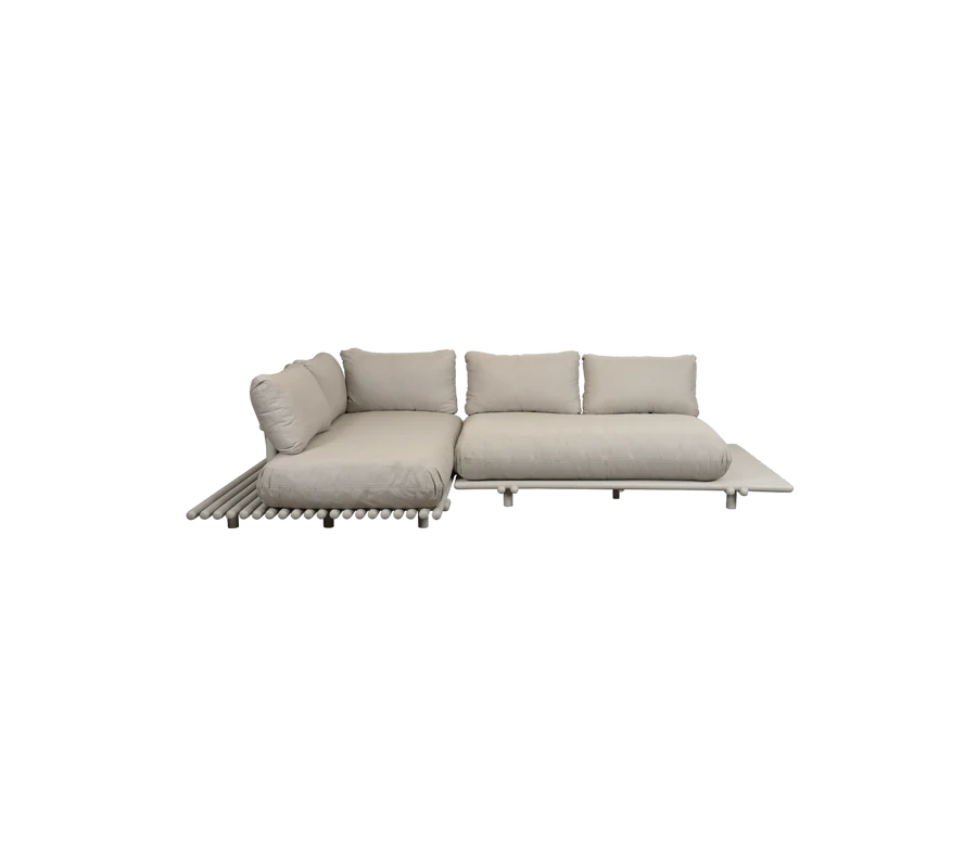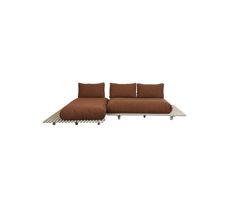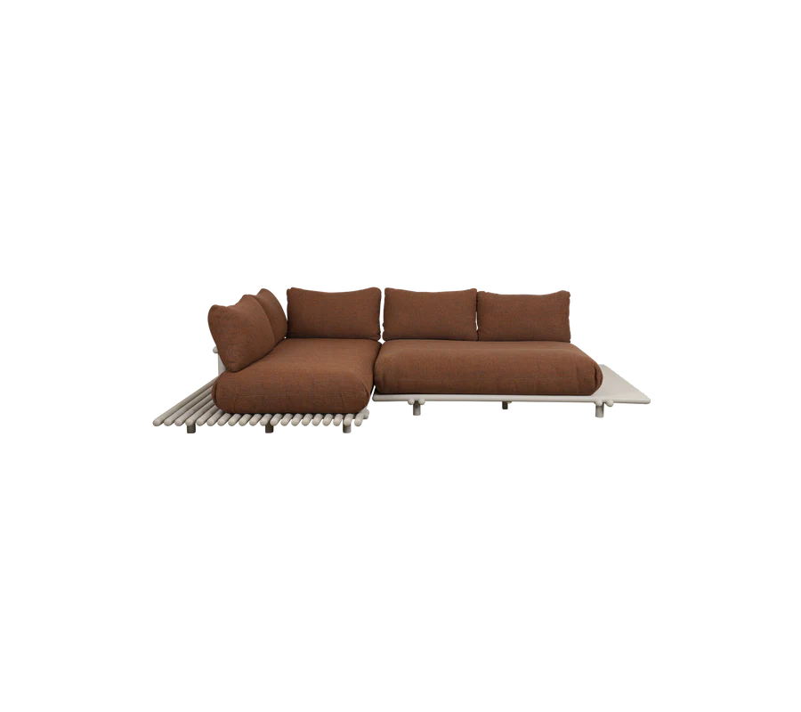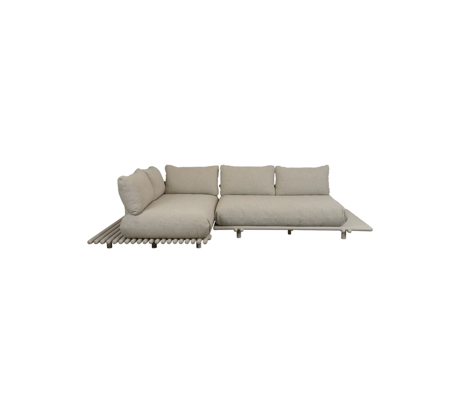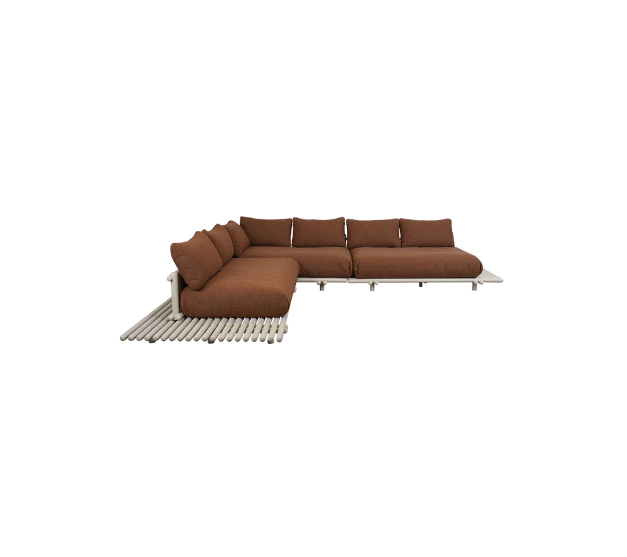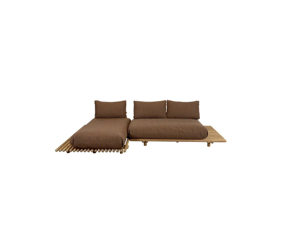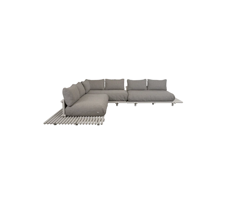 The Sticks Platform corner sofa, designed by Cane-line Design, blends casual comfort and sophisticated design, making it perfect for solo lounging or social gatherings. Its durable frame comes in certified teak, which gains a beautiful silver-grey patina over time. If you wish to preserve the original golden-brown colour, we recommend using Teak Care products. The frame is also available in powder-coated aluminium with strong durability and low maintenance. The plush seating and back cushions are made with resilient fabric and feature the innovative QuickDry & Airflow system, providing quick-drying and optimal air circulation all year round, even after rain.