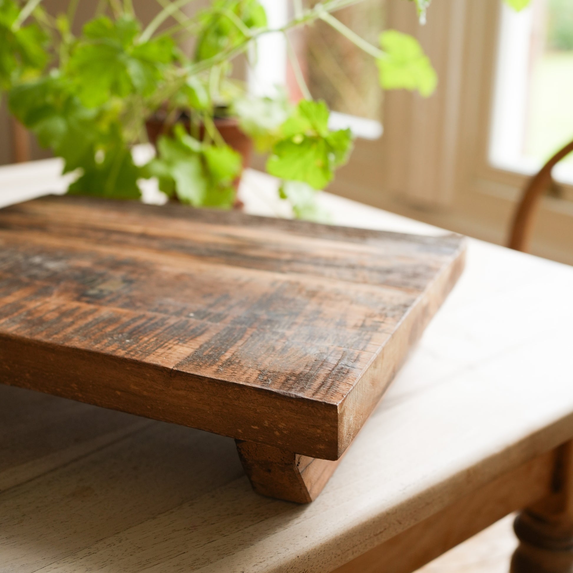 The styling options for this piece are endless. Use as a centre piece with candles, as a serving platter with grease proof paper, as a riser on a worktop for oils and salts or even as a plant stand. As this is vintage, no two are the same, giving each piece beauty and individuality. These pieces are made from Shorea Robusta (or Sal Wood) which is a tree native to India where the products are made. Our vintage pieces are either original or are carved from recycled Shorea Robusta wood.