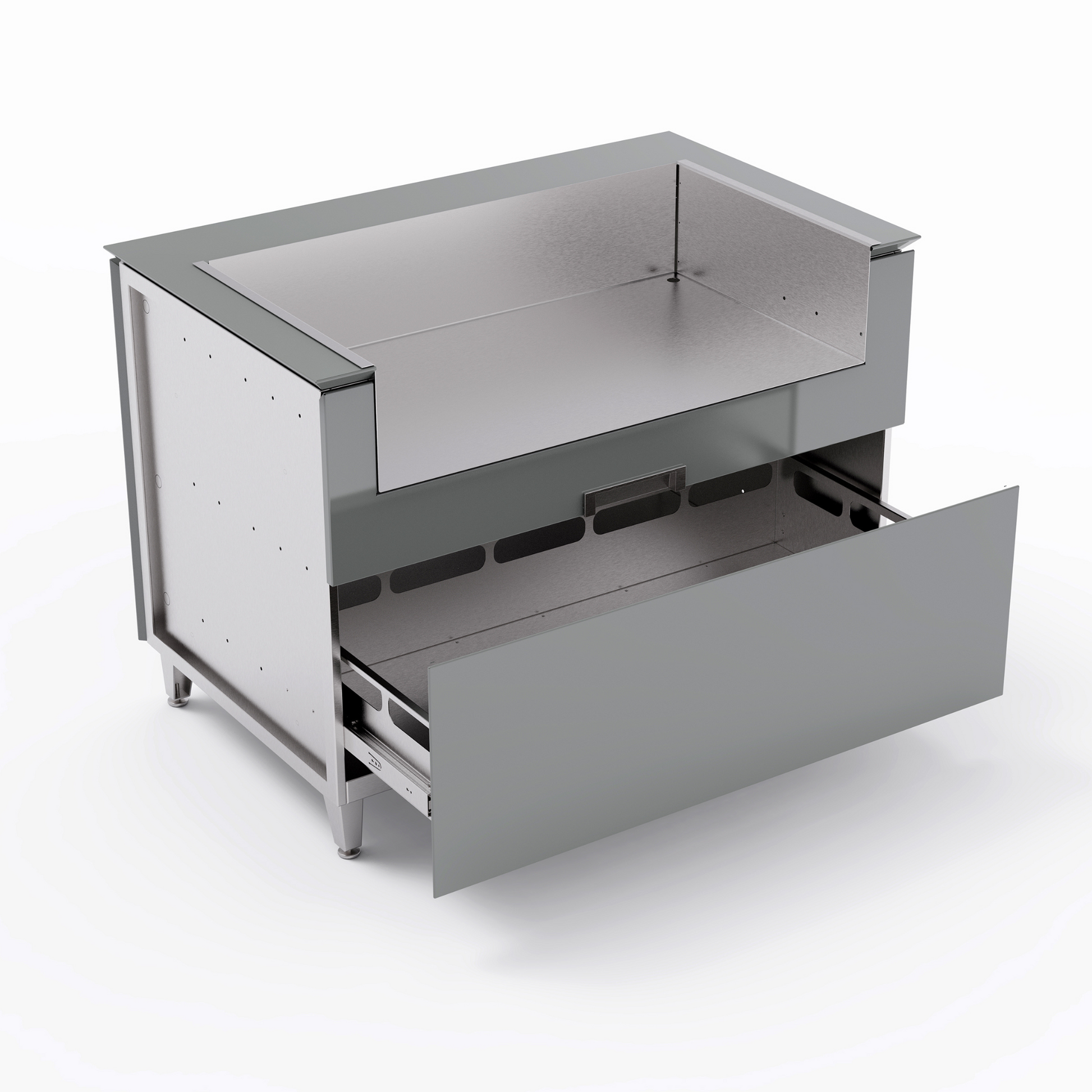 The new design offers storage space underneath the BBQ unit, with a large pull out drawer that is designed with a heat shield to allow use even when cooking.